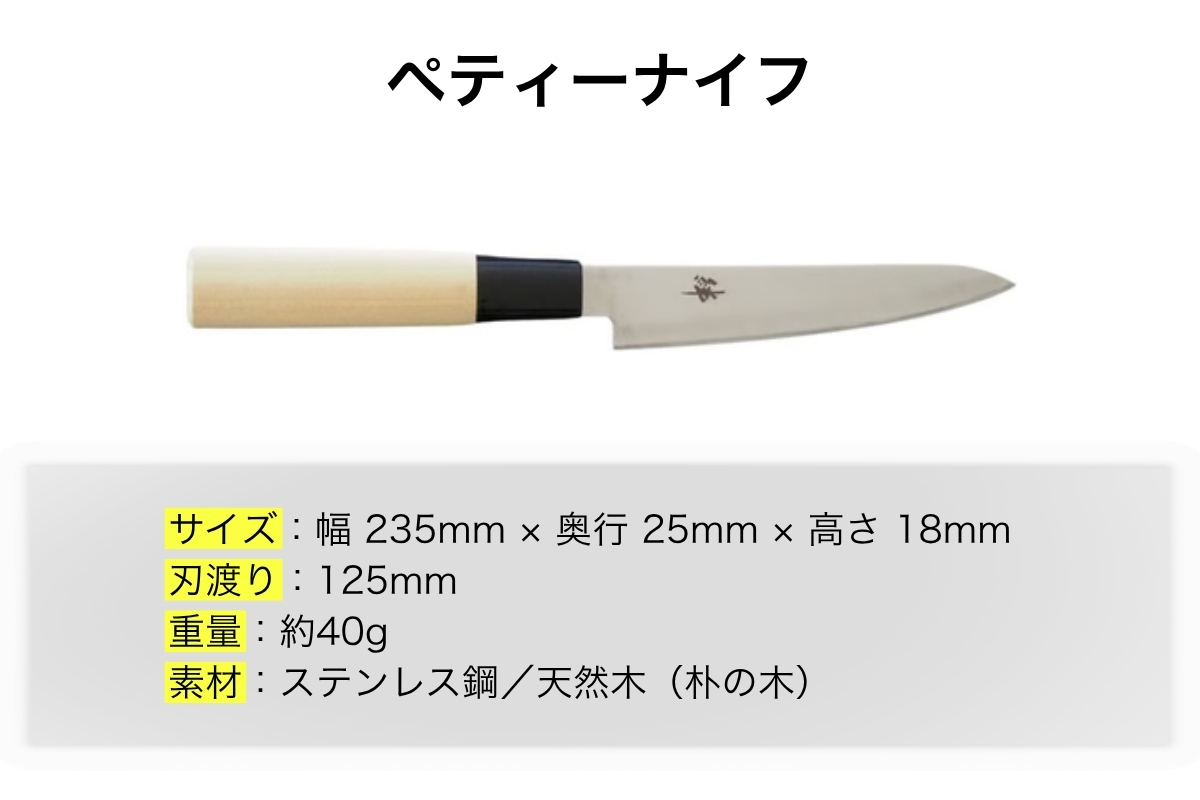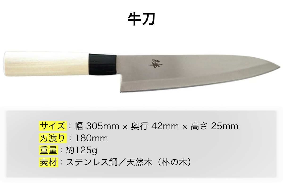- 刃: 高炭素ステンレス鋼(錆びにくく、長く切れ味が続く)