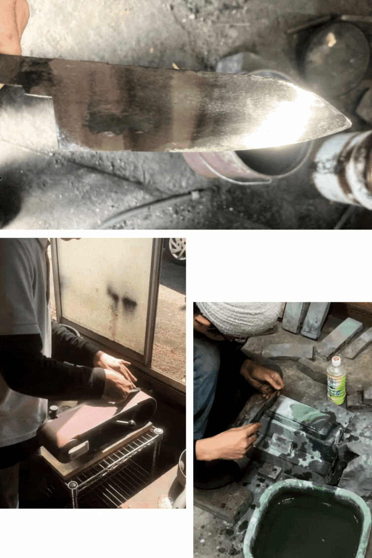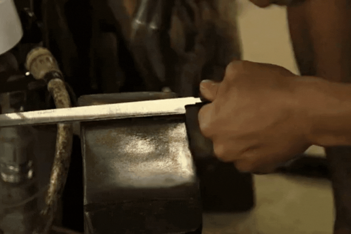 包丁はいよいよ最後の仕上げ工程「研ぎ」へ。