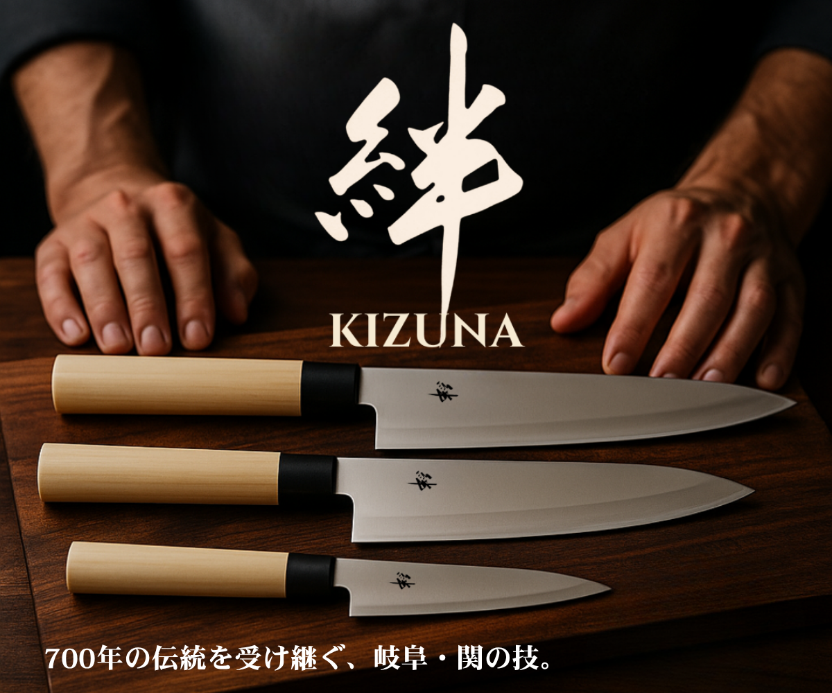 700年の伝統を受け継ぐ、関の職人が一本ずつ丁寧に仕上げた本格包丁・絆-Kizuna-。