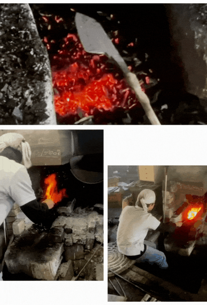 この工程では、日本刀づくりの「焼入れ」技術を応用しています。